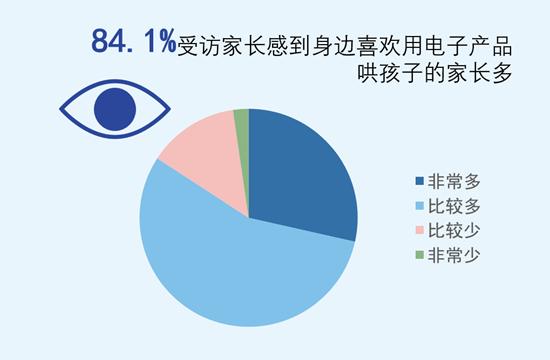 84.1%受访家长感到身边喜欢用电子产品哄孩子的家长多