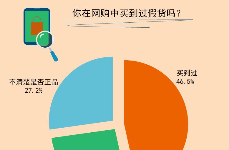 调查显示,46.5%的受访者在网购过程中买到过假货,27.2%的受访者坦言不清楚买到的是否正品。