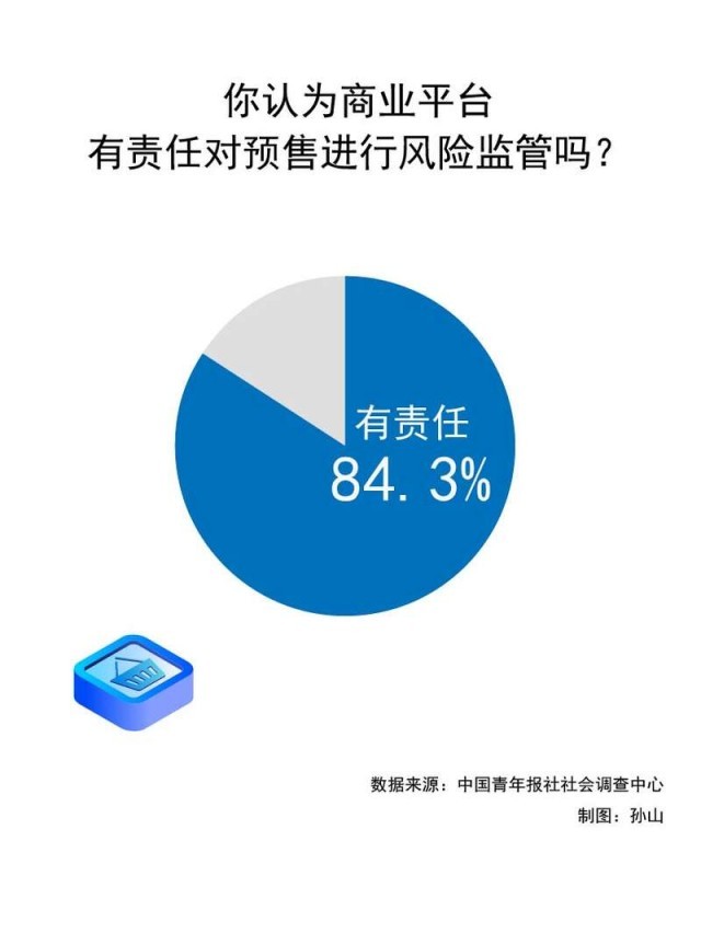 调查中,84.3%的受访者认为商业平台有责任对预售进行风险监管。