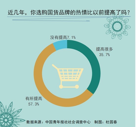 上周,中国青年报社社会调查中心联合问卷网(wenjuan.com),对2005名受访者进行的一项调查显示,93.0%的受访者表示,近几年选购国货品牌的热情比以前提高了。