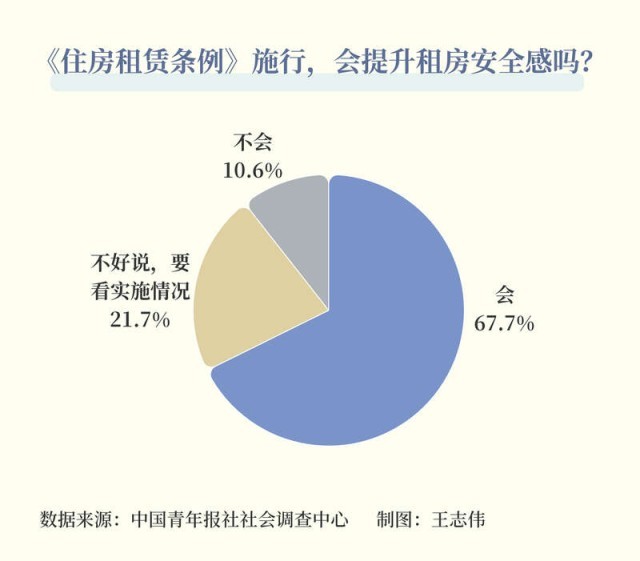 调查显示,《住房租赁条例》的出台实施,67.7%受访者认为会提升租房安全感,但也有21.7%的受访者坦言要看后续落实情况。