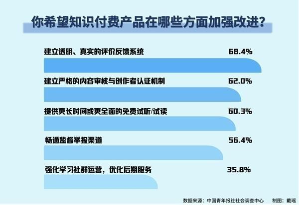 68.4%受访青年希望建立透明、真实的知识付费平台评价反馈系统