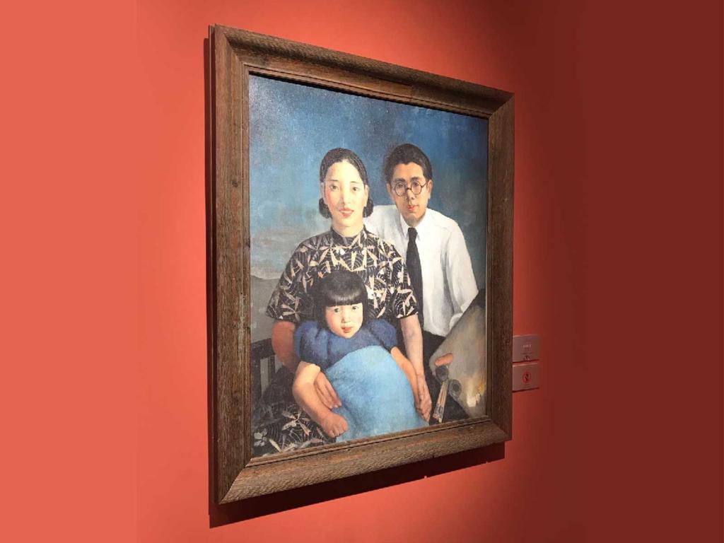 在常书鸿创作的全家福自画像《画家家庭》里,一家三口,年幼的常沙娜依偎在妈妈怀里,笑容灿烂。